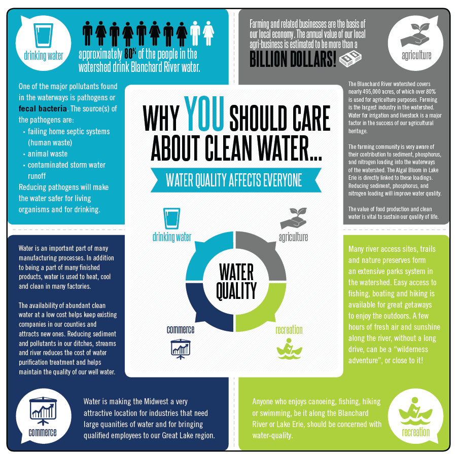 The latest water quality study of the Blanchard River shows that only 40 percent of our waterways meet the goals of the Clean Water Act. That means 60 percent of our waterways do not yet meet that standard and need improvement.