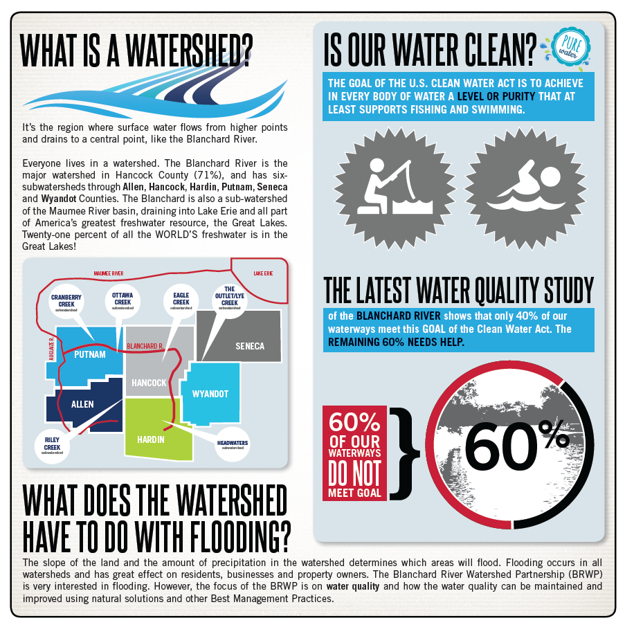 Want a quick visual guide to the Blanchard River watershed, water quality, and flooding? Download and share our infographic. These are perfect for classrooms, community groups, local partners, and anyone who wants a simple explanation of how the watershed works.
